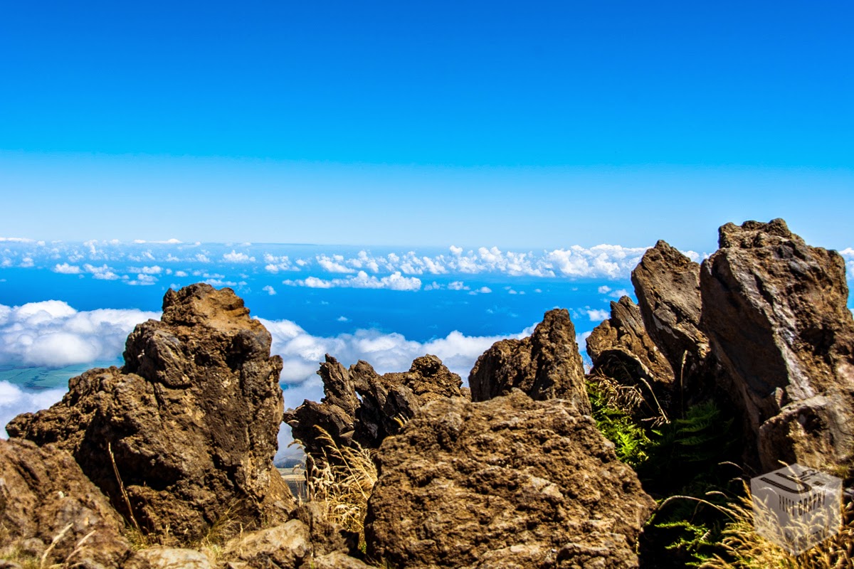 Der Weg war tatsächlich sehr kurz und führte auch nur mäßig bergauf, was allerdings in diesen Höhen schon dazu reichte, dass das Herz ein bisschen schneller schlug als sonst. Wir schafften es aber dennoch beide, die Plattform zu erreichen, bevor die Sonne ihren rotorangenen und herrlich strahlenden Körper aus den Wolken hob und mit einem irren Farbspektakel dafür sorgte, dass man auch Mauna Loa und Mauna Kea drüben auf Big Island sehr gut erkennen konnte. Auf dem Parkplatz wurde zu diesem Zeitpunkt ein traditionelles hawaiianisches Lied gespielt, vermutlich um der Sonne oder einer damit zusammenhängenden Göttin zu huldigen. Die Musik drang aber nur sehr schwach zu uns und so konzentrierten wir uns lieber auf das immer wieder wechselnde Farbspektakel vor uns. Zum Glück schien diese Plattform tatsächlich ein Geheimtipp zu sein, denn hier waren nur so circa zehn bis fünfzehn Leute und wir bekamen locker noch Plätze in der ersten Reihe. :-)
